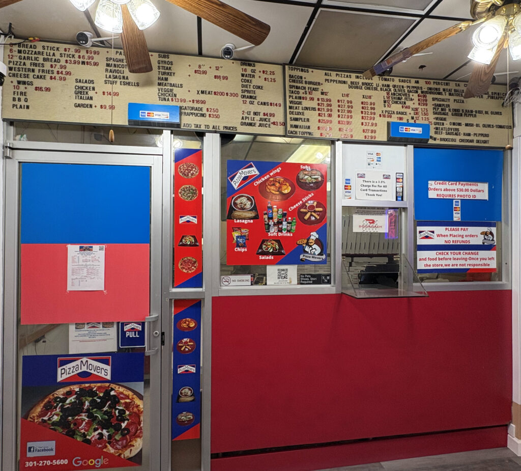 In nouveau-foodie Takoma Park, Pizza Movers gets the respect of a red-headed stepchild from tie-dyed-in-the-wool Takoma Parkers, and that’s a shame. Established in 19851, poor Pizza Movers is among the oldest Mom & Pop businesses in Old Town Takoma Park, Maryland. To be fair, despite Pizza Mover’s recent storefront remodel, this carryout/delivery-only establishment is kinda customer-hostile.