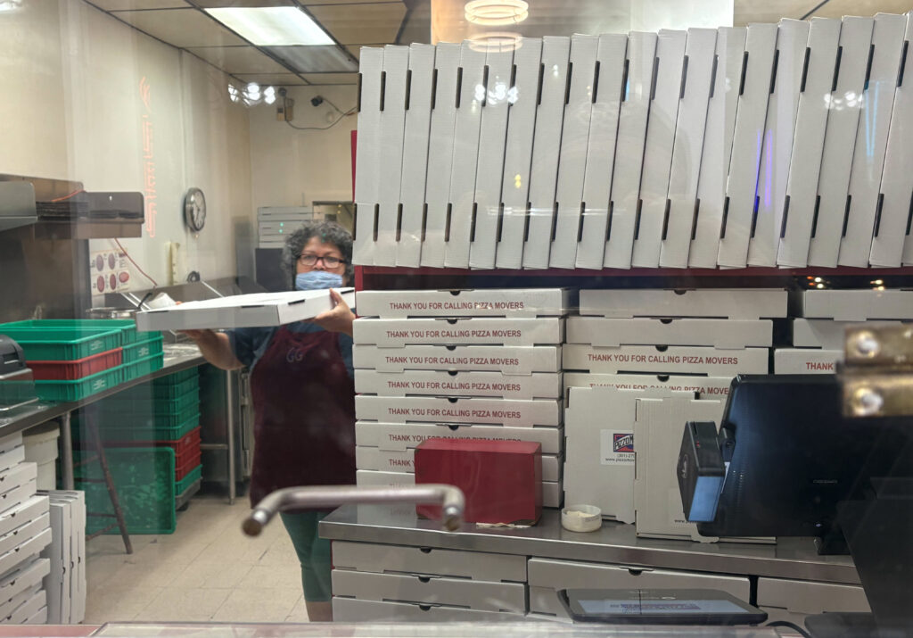 Instead of developing bonhomie with their upper-middle-class, predominantly white customers, the husband-and-wife Pizza Movers team operates behind bulletproof glass. Customers who pick up in person are issued their pizzas through a slot in the glass just wide enough for an 18″ pie. With online ordering and the preponderance of in-person credit card payments, it’s unlikely Pizza Movers ever has enough cash on hand to be a robbery target.2 However, the separation from their customers likely enabled Pizza Movers to operate normally during the COVID-19 pandemic and will serve them well during the next pandemic.3